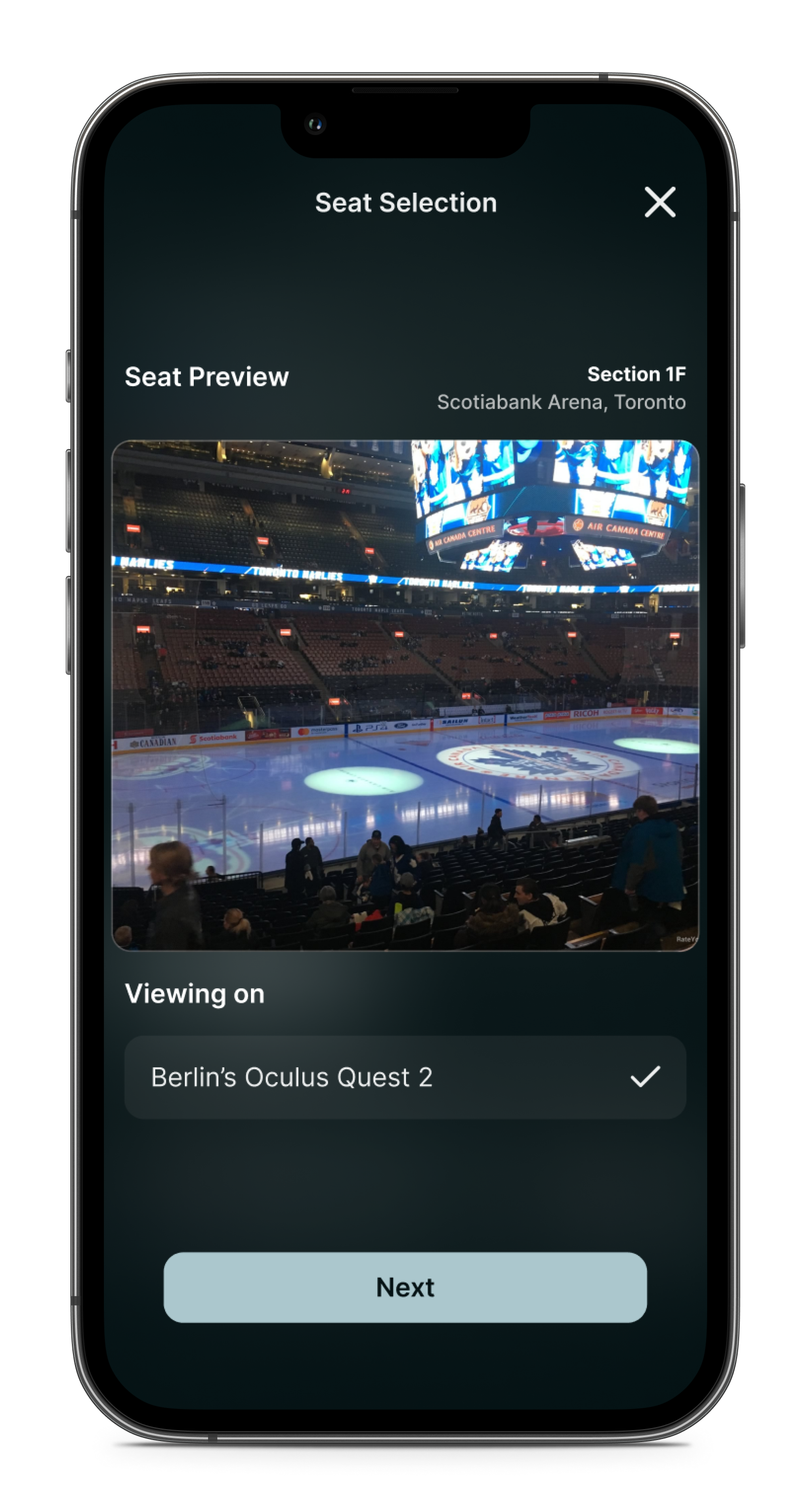 After selecting a game’s live-stream, users are brought to seat selection to choose where they will view the game from. Once selected, users will be shown a seat preview before receiving their virtual ticket to begin watching the event