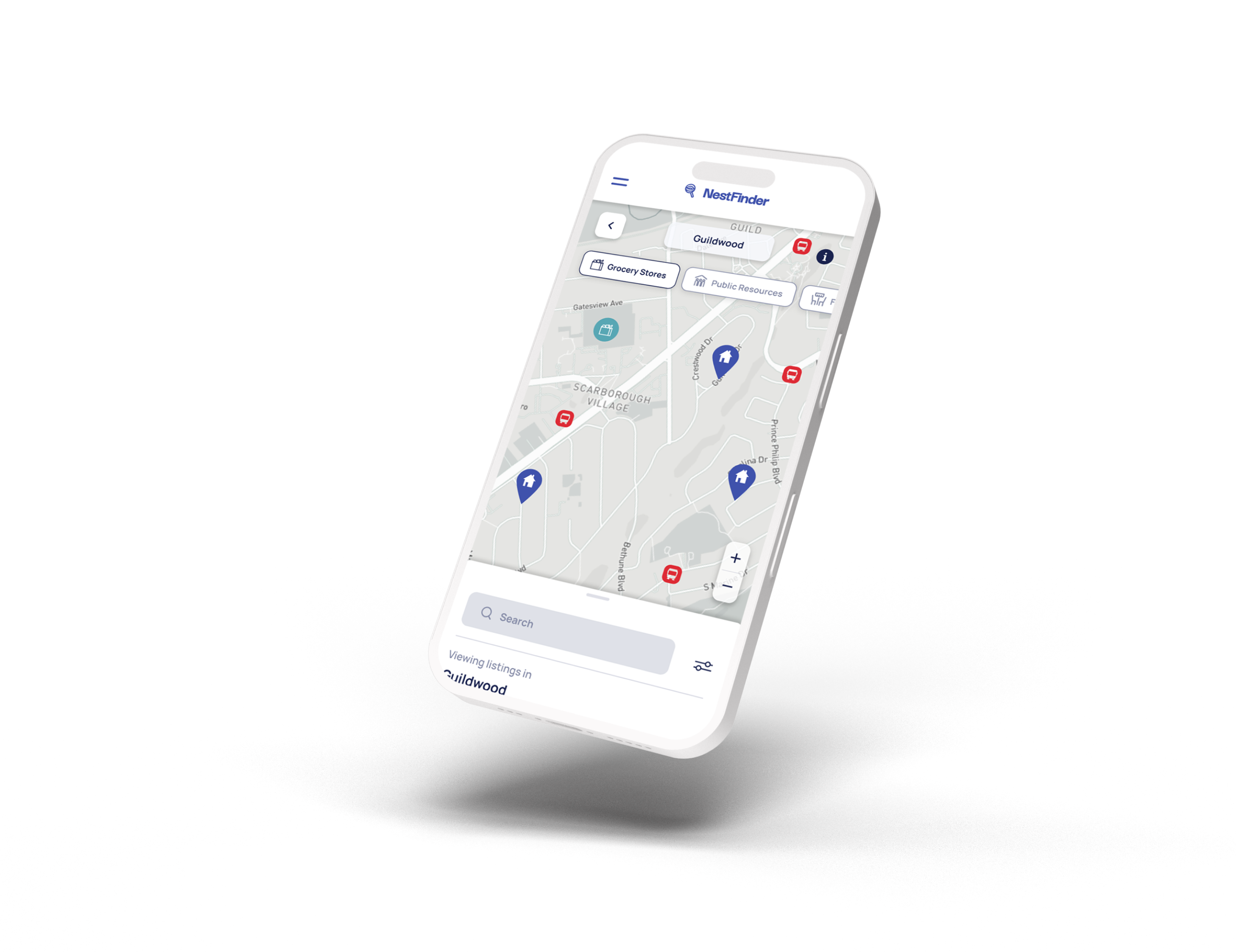 The key features of NestFinder include the ability to simultaneously view housing listings based on user preferences while evaluating its proximity to prayer sites, community centres, schools, international grocery stores, and other amenities they may desire in their chosen region. The platform also features a comprehensive map with multiple view modes to visualize population density of cultural communities, the ability to save and compare listings, adjustable map filters, and tool tips.